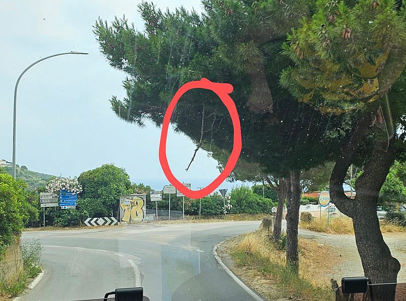 CAPOLIVERI — Un ramo pericolante di un pino a bordo strada sta creando disagi alla viabilità, in particolare ai bus.