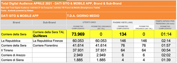 I lettori del sito dell'Elba rappresentano il 9,3% tra quelli delle 35 testate locali che compongono l'intero network, nato nel 2014 e che come risulta anche dai dati di Aprile 2021 di Audiweb - istituto ufficiale di rilevazione indipendente riconosciuto dalla AgCom - è il primo quotidiano di informazione della Toscana davanti a La Repubblica (Firenze), Il Corriere Fiorentino ed Il Tirreno.