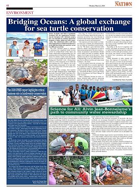 ISOLA D'ELBA — Oggi, Seychelle Nation, ha pubblicato a tutta pagina l’articolo “Bridging Oceans: A global exchange for sea turtle conservation”, dedicato all’esperienza fatta a Cousin Island dai volontari di Legambiente Arcipelago Toscano Isa Tonso, Enrico Michelon e Tatiana Segnini.