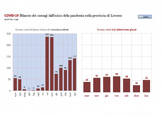 Per quanto riguarda le guarigioni sono state 71, 62 nella zona Livornese e 9 nelle Valli Etrusche.