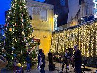 Nel pomeriggio i festeggiamenti sono proseguiti nel borgo di Marciana, dove la musica della Black Butter Band e i colori dei mercatini di Natale hanno creato un’atmosfera suggestiva. Il momento culminante è stato l’accensione dell’Albero di Natale in piazza, addobbato con messaggi di pace realizzati dai bambini: parole semplici ma profonde, che ricordano a tutti il valore del dialogo e della serenità.
