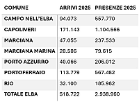 "Se non sorprende, anche alla luce della ridotta estensione territoriale e delle dimensioni del Comune, che Marciana Marina si collochi all’ultimo posto tra i sette dell’isola per incidenza sulle presenze totali, colpisce invece un altro dato: è l’unico Comune a far registrare il segno meno, sia negli arrivi che nelle presenze, rispetto all’anno precedente. - prosegue la minoranza - I numeri parlano chiaro. Gli arrivi passano da 22.278 nel 2024 a 20.506 nel 2025, con una diminuzione di 1.772 unità, pari a quasi l’8% in meno".