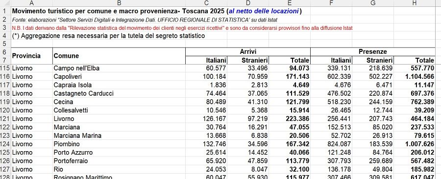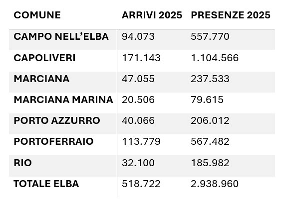 MARCIANA MARINA — "Prendiamo atto dei dati pubblicati dalla Regione Toscana e rilanciati da organi di informazione locale online sul turismo elbano 2025. Al di là dei numeri complessivi dell’isola, che mostrano differenze significative tra i Comuni – con Capoliveri e Portoferraio a trainare i flussi turistici e Capoliveri e Campo nell’Elba a registrare gli incrementi più consistenti rispetto al 2024 – emerge un elemento preoccupante e negativo che riguarda direttamente Marciana Marina".