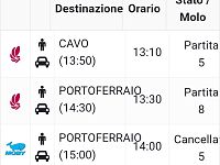 Abbiamo quindi fatto una verifica con la biglietteria di Portoferraio chiedendo perchè queste continue cancellazioni. Dalla biglietteria ci è stato risposto che si tratta di un errore di quei tabelloni legati a MonicaApp e Portofacile.it e che al momento nell'orario in vigore non è prevista la partenza delle 14 da Piombino di Moby ma che il servizio dovrebbe entrare in vigore da lunedì 16 Marzo.