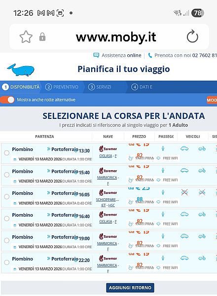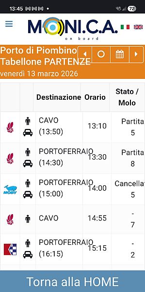 In effetti, dopo aver verificato sia oggi che ieri sul tabellone online Portofacile.it e su MonicaApp, entrambi facenti capo all'Autorità di Sistema Portuale, sia ieri che oggi il traghetto delle 14 di Moby viene indicato come "cancellato".