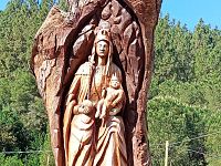 La scultura rappresenta la Madonna nera di Monserrato con il bambino (come si vede dall'immagine pubblicata su Facebook dal Comune) e lo scultore che ha realizzato l'opera è Andrea Gandini.