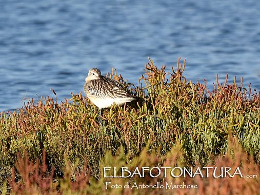 Ho un po' di tempo libero e decido di fare una passeggiata presso l'ultimo bacino delle Antiche Saline di San Giovanni per vedere se il vento da nord ha portato qualche specie interessante da documentare. Dopo aver percorso quasi tutto il perimetro meridionale della laguna, e aver notato come sia alta la marea, fatto che rende difficile la pesca degli abituali aironi, arrivo in prossimità della diga che separa il bacino dal mare dove vedo un Gabbiano comune, specie abbastanza rara all'Elba, che decido di documentare con alcune scatti. Ad un certo punto l'animale si alza in volo e si sposta verso l'angolo nord-orientale della laguna, dove le mareggiate di grecale hanno creato una piccola lingua sabbiosa, quasi una piccola spiaggia nel bacino delle antiche saline. Osservandolo col teleobiettivo noto che nell'inquadratura, lì vicino appare qualcos'altro, sicuramente un altro animale, apparentemente un limicolo che si sta riposando con la testa ripiegata sulla schiena.