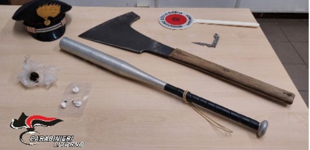 Nel corso degli accertamenti, i militari hanno approfondito il controllo trovando all’interno del veicolo della cocaina pari a circa 0,70 grammi, nel bagagliaio dell’auto una mannaia di quasi un metro di lunghezza ed una mazza da baseball in metallo il cui porto era assolutamente ingiustificato a quell’ora della notte e perché sull’isola non risultano presenti campi da baseball mentre addosso all’uomo è stato rinvenuto un coltello con lama a scomparsa.
