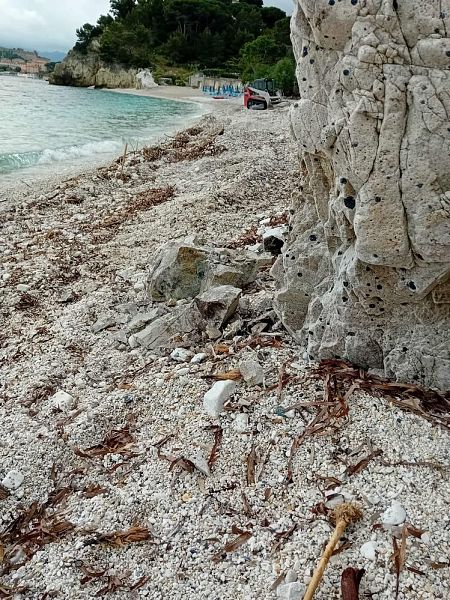 "E’ il caso della magnifica spiaggia di ciottoli bianchi della Padulella, dove intorno alle 8 di stamattina, - prosegue Legambiente - durante le operazioni di pulizia e livellamento Padulella, una ruspa evidentemente troppo grossa ha urtato uno sperone alla base della falesia di Capo Bianco, causando il distacco di una porzione di roccia".