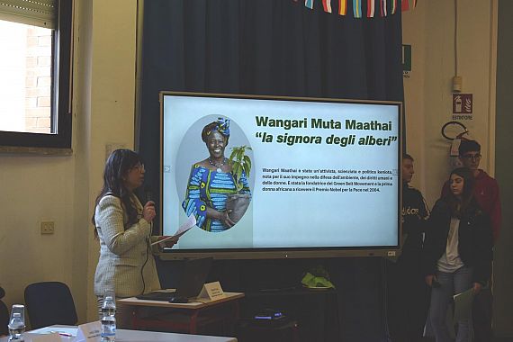 Ancora: l’intervento dello studente Zeno Impeto Del Re (III TEC, Agraria) ha fatto riflettere sull’importanza e necessità di tutelare e preservare le antiche piante elbane; allo stesso tempo la studentessa Elena Centurioni (III GeC) ha illustrato alla platea le tecniche che ha impiegato nella realizzazione di targhe di importante impatto visivo, quali quelle che delimitano la zona del Giardino dei Giusti dell’istituto e quella dedicata a Wangari.