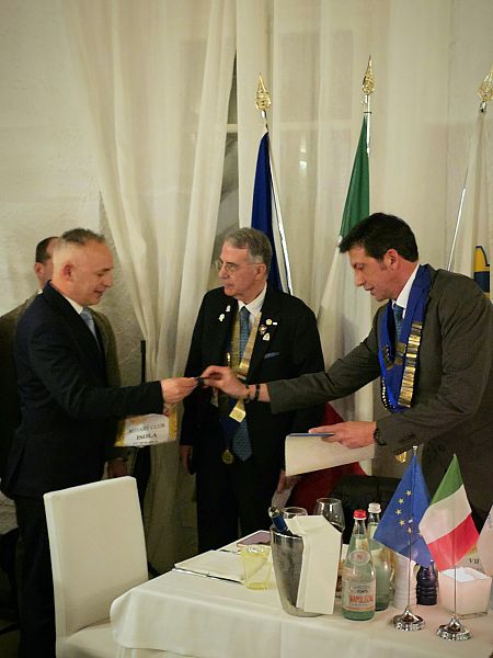 Il Presidente, dopo aver letto la formula rituale di ammissione al Club, ha passato dapprima la parola ai soci che li hanno proposti: Angelo Martino per Antonio e Rita Bacci per Lello che hanno presentato i due nuovi amici elencandone le qualità e le caratteristiche che ben si identificano con gli scopi del Rotary, quindi ha ceduto il posto al Governatore che, oltre alla consueta spillatura ed alla consegna dei materiali rotariani di benvenuto, ha invitato i soci tutti ad accogliere Antonio e Lello con lo spirito di amicizia che contraddistingue la nostra associazione.