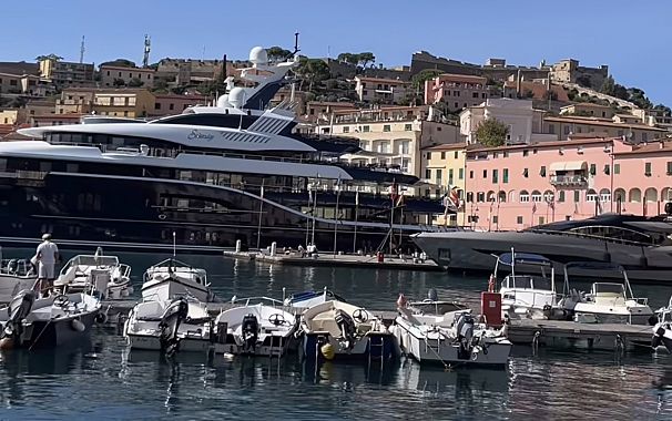 E infatti in darsena a Portoferraio è arrivato il megayacht Solandge, lungo 85 metri e costruito nei cantieri tedeschi Lurssen nel 2013, poi rinnovato nel 2022.