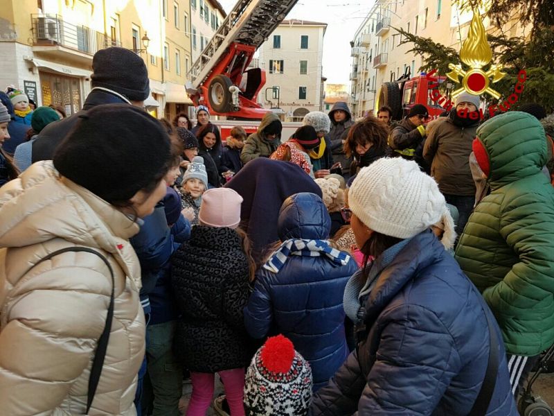 Nel rispetto della tradizione la Befana si è calata in piazza Cavour a Portoferraio offrendosi per le foto ricordo dei bambini