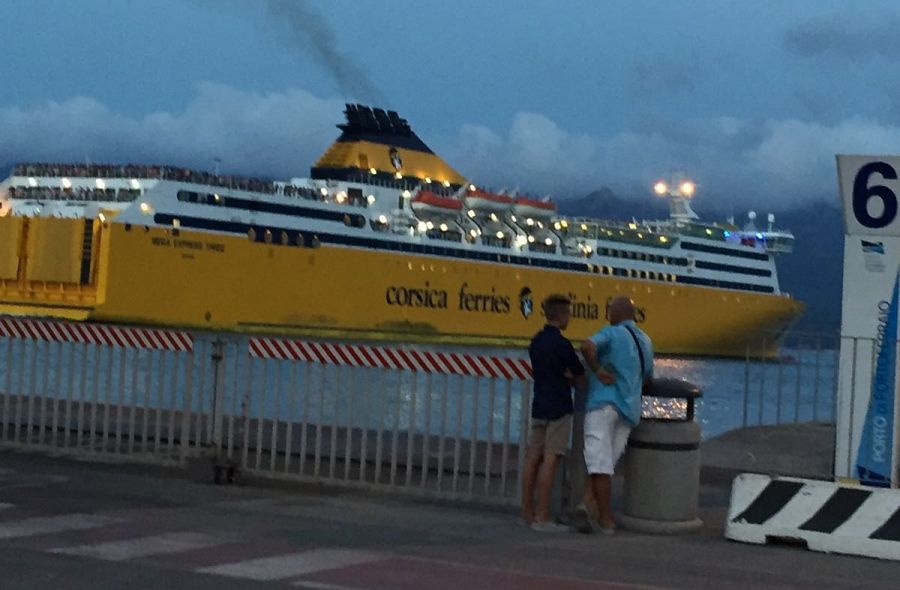 Il traghetto Mega Express III della Corsica Ferries costretto all'attracco nel porto di Portoferraio per prestare soccorso a una passeggera incinta