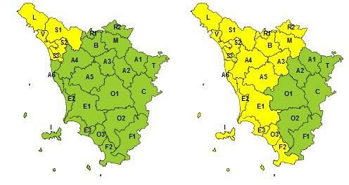Mappa dell'allerta (Fonte: Regione Toscana)
