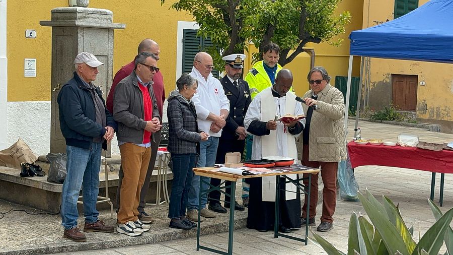 Presenti anche, oltre alle autorità civili e alle cittadine e ai cittadini riesi, le autorità militari e religiose, rappresentanti di associazioni e partiti politici di Rio Marina.